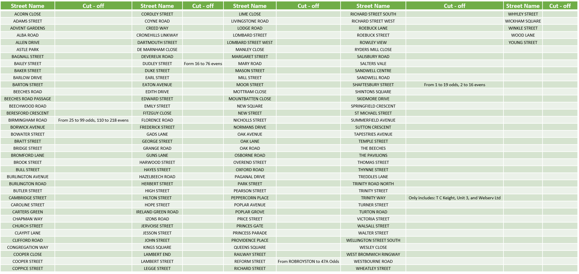 List of Additional Licensing properties