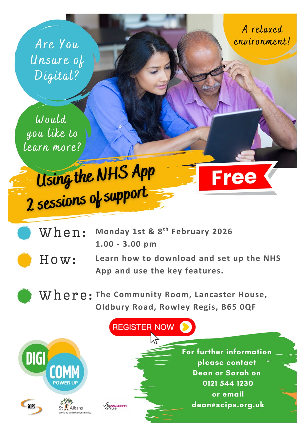 ‘learn more about how to download and set up the NHS app and find out more about its key features’ – Taking place on Monday 1st & Monday 8th February 2026, Interested? Then contact Dean or Sarah on 0121 5441 230 or email dean@scips.org.uk to find out more or follow the link.